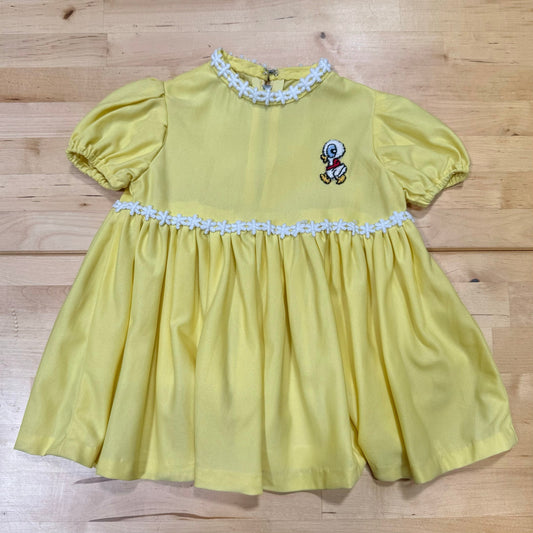 Vintage 60s 70s kids butter yellow duck dress / toddler size 12 months