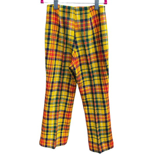 vintage kids 60s 70s yellow plaid flare pants / high rise bell bottoms / size XS 4 5 6