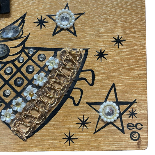 vintage 1960s Enid Collins of Texas "Glad Money" angel wood box bag purse / signed and dated