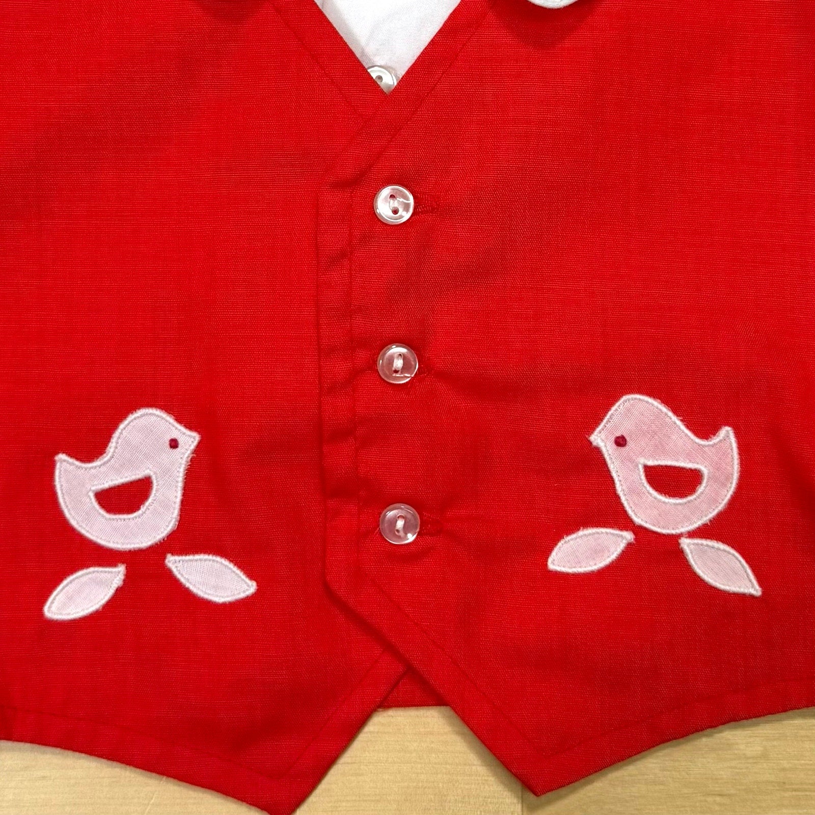 Vintage 70s baby toddler red and white dove applique vest top / size 12-18 months